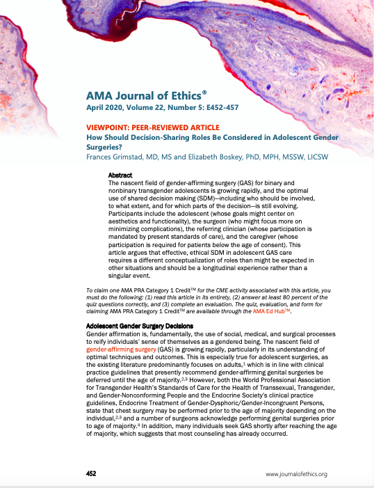 Decision-Sharing Roles in Adolescent Gender Surguries