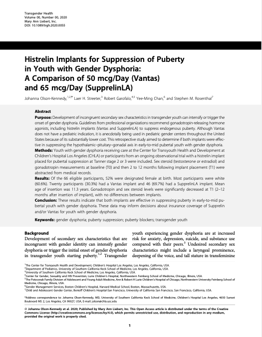 By Johanna Olson-Kennedy, Laer H. Streeter, Robert Garofalo, Yee-Ming Chan, and Stephen M. Rosenthal.